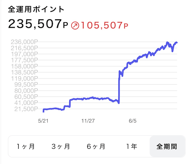 現在の運用実績は105,507Pです。