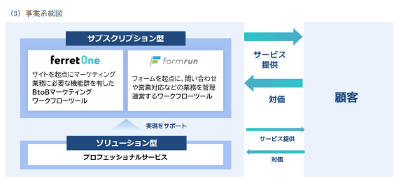 事業内容はBtoBマーケティングツール「ferret One」等の提供、およびメディア「ferret」の運営です。