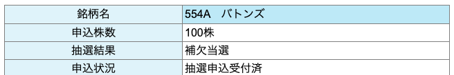 バトンズのIPO抽選結果