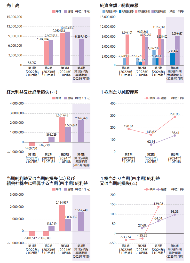 業績を見ると売上、純損益ともに好調でもちろん黒字です。