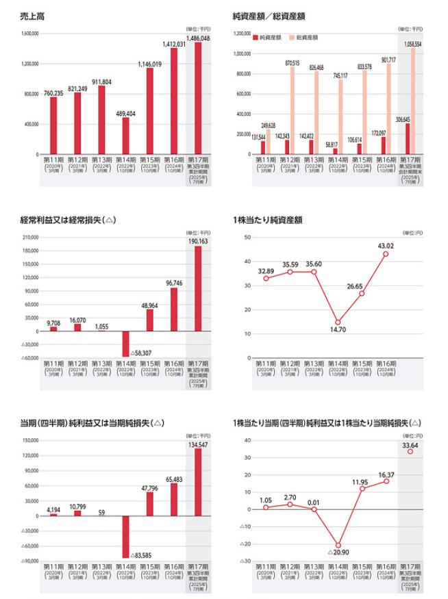14期の業績が凹んでいますが、こちらは決算期変更による影響です。
