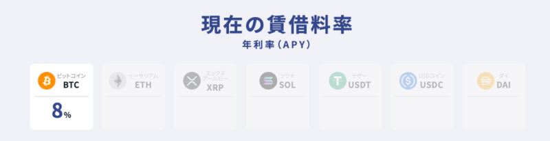 この記事を書いている時点でらくらくちょコインで貸し出しできる通貨と料率は下記の通り。