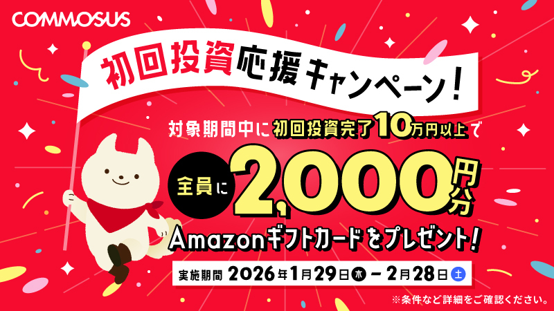 2026年1月29日から2月日28の間に新規口座開設して、10万円以上投資するとAmazonギフトカード2,000円分がもらえます。