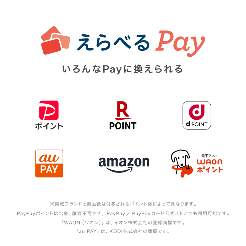 ちなみにえらべるPayで選べるで交換できる商品はこんな感じ。