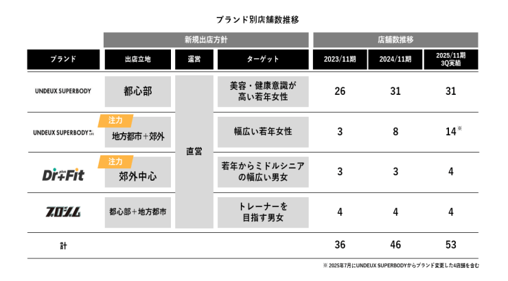 ブランドに応じて出店を工夫しており、現在までに53店舗を運営しています。