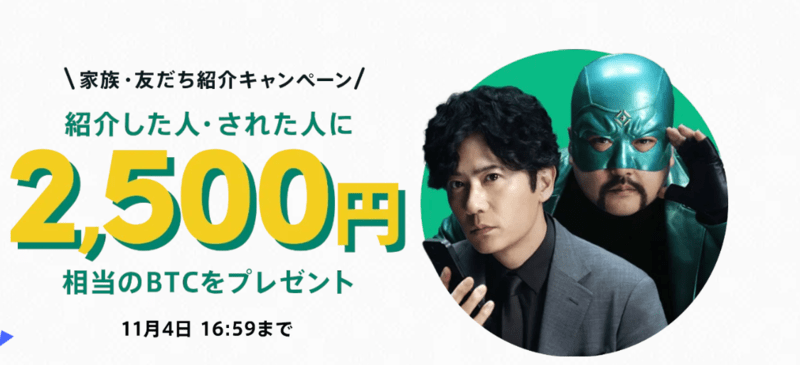 ちなみに下記リンクからコインチェックに口座開設すると2,500円分のビットコインがもらえます。(2025/11/4まで)
