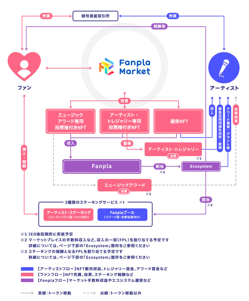 アーティストとファンが直接つながり、共創することで生まれる新しいエンターテインメント体験を支えるプラットフォーム「Fanplaシステム」の主要サービスで利用できる暗号資産です。