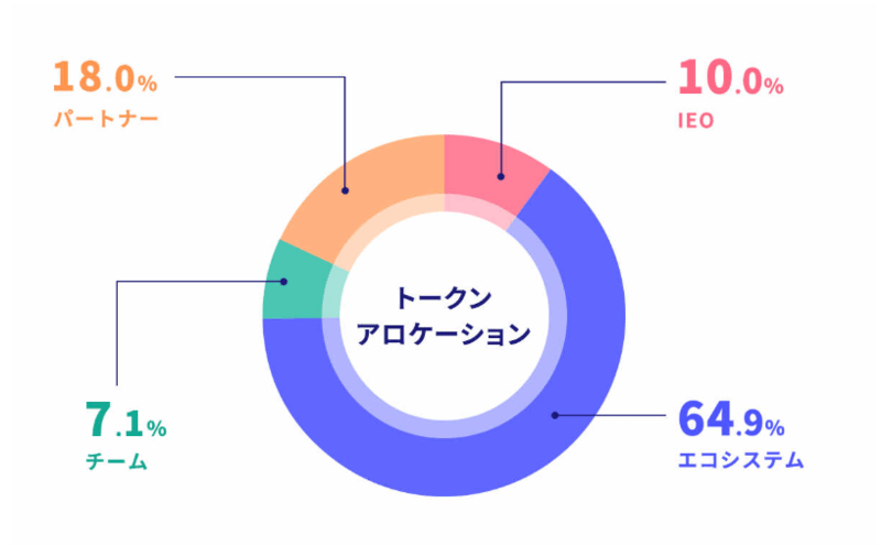 10%がIEO、Fanpla経済圏で活動するファン・アーティストへの報酬や、その他エコシステムに貢献する行為や貢献者に対する報酬、エコシステムを維持するための開発費・運営費等として65%が割当られます。