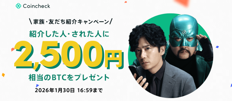 2025/12/17までに口座開設する500円分のビットコインがもらえます。