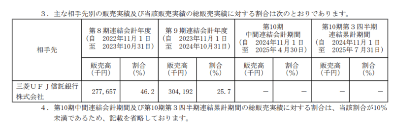相手先は8期と9期に三菱UFJ信託銀行の名前があります。