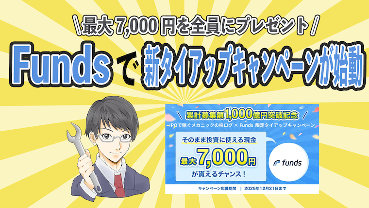 2025年12月21日までに当ブログ経由でFunds(ファンズ)に口座開設すると現金2,000円が貰えます。