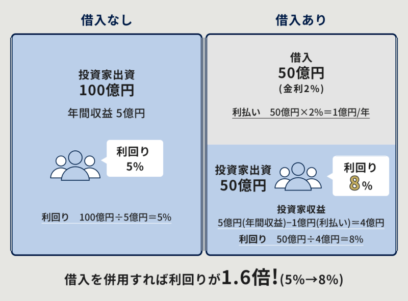 これにより投資家からの出資額を抑えられるため、出資額あたりのリターンを増やせます。