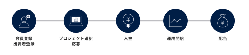 入金が完了したら運用が開始され、運用期間が終了すると分配金と出資金が登録した銀行口座に償還されます。