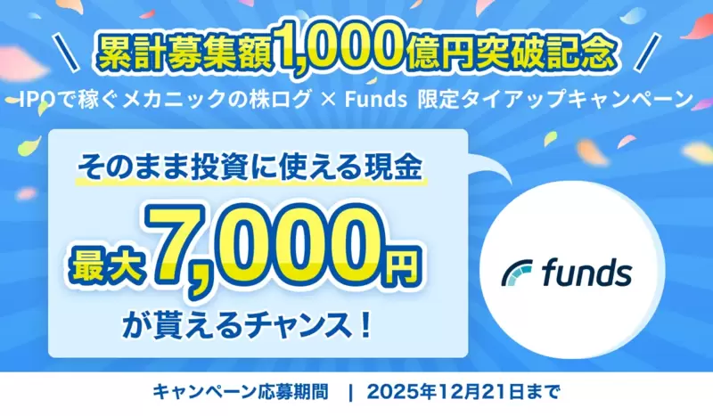 是非このお得な期間にFundsでの投資を始めてみてください。