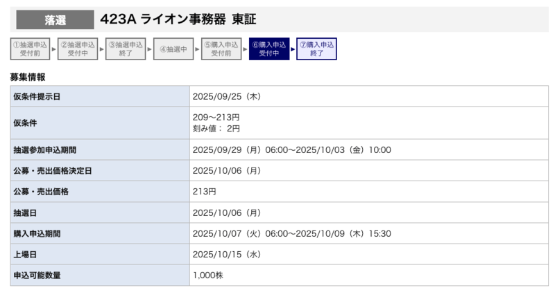 ライオン事務器のIPO抽選結果