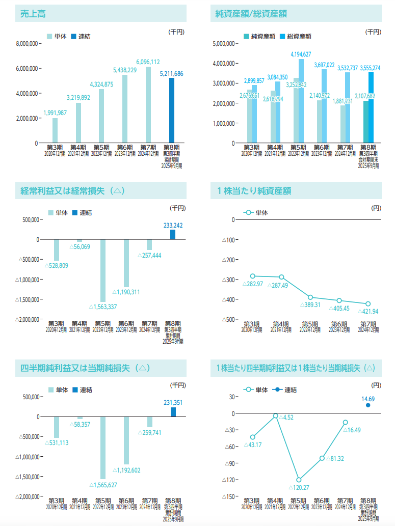 赤字が続いていますが、売上は順調に伸びているので成長性を感じます。