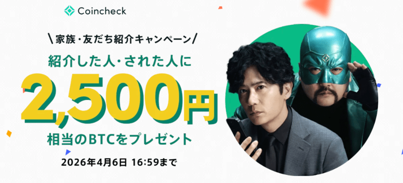 暗号資産取引所のコインチェックでは紹介キャンペーンを実施中です。