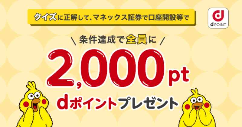マネックス証券では最大2,000Pが貰えるキャンペーンを実施中です。
