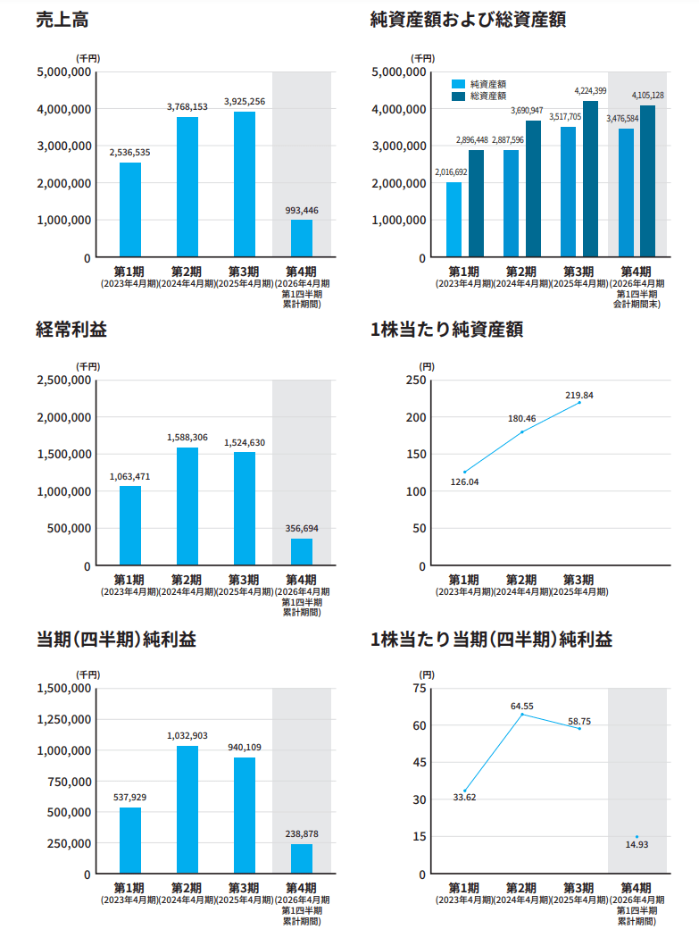 成長性はそこまで高くありませんがしっかりと黒字を維持していますね。