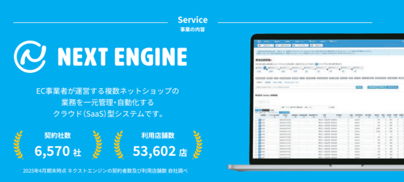 主力はネクストエンジンというEC運営を自動化、効率化して一元管理できるSaaS型サービスです。
