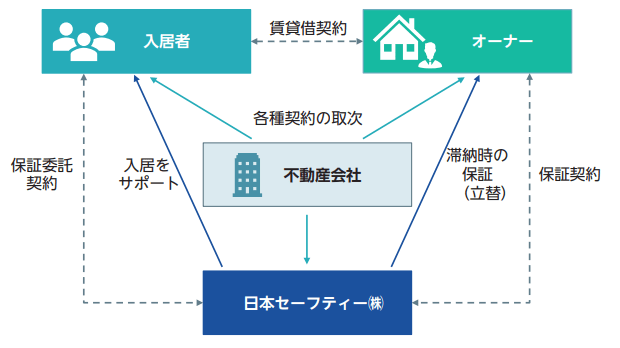 子会社の日本セーフティー(株)が入居者の連帯保証人になり、万が一入居者が賃料を払わなかった場合は代位弁済して、貸借料を回収しています。
