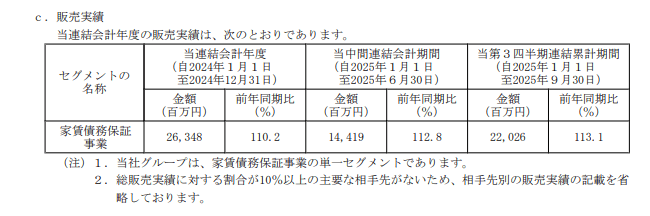 事業内容は家賃債務保証事業です。