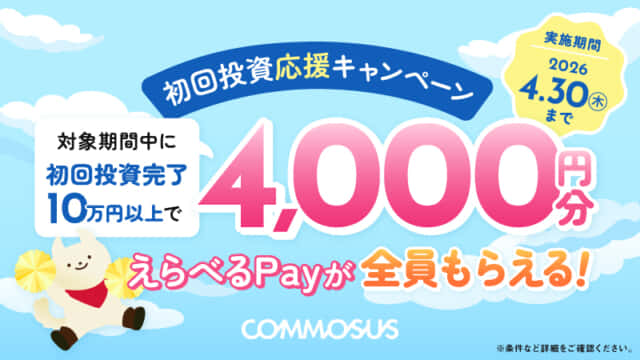 投資型クラファン 【えらべるPay4,000円分】コモサスが本気のキャンペーンをぶっ込んできた!! 2026年4月13日 メカニック どうも、メカです。 ソーシャルレンディングサービスを運営するコモサスがお得なキャンペーンを実施していたのに見逃していました。 …