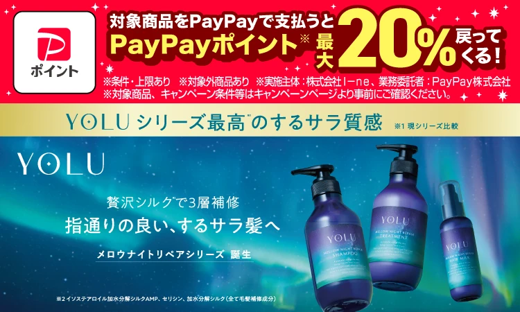 YOLUをPayPayで購入すると最大20%分のPayPayポイントが戻ってきます。