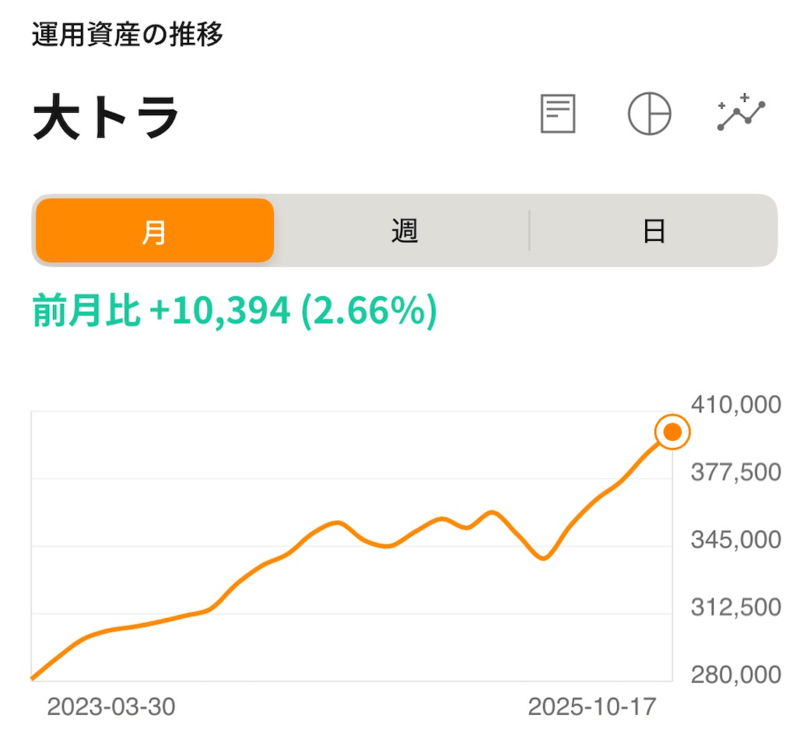 ただ、自分はウェルスナビやTHEOでも投資していますがトラノコと比べ物にならないほどの利益を得ています。