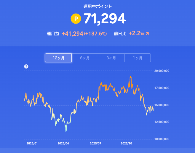 【2025/12】ポイントビットコインby楽天PointClubの運用実績
