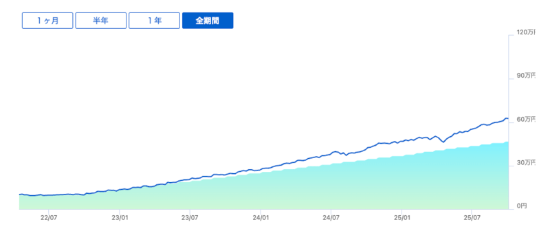 10月から1万円積立設定しており、現在は47万円をAI投資コースに投資中。