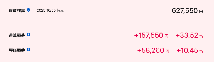 長期投資前提ですので、短期間での成績はあまり気にしていませんがやはり含み益だと嬉しいものです。