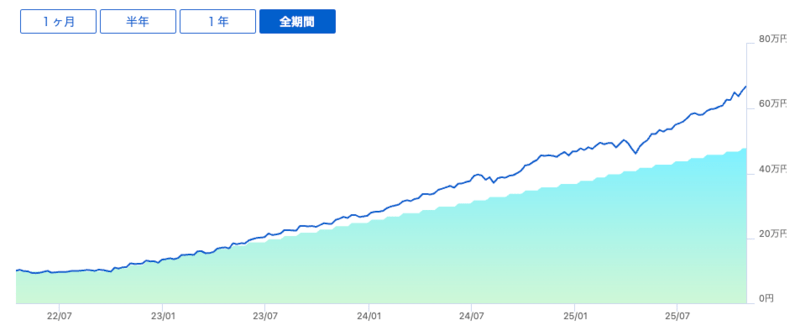10月から1万円積立設定しており、現在は47万円をAI投資コースに投資中。