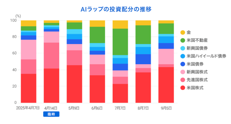 相場に合わせてAIが判断し、この8つの投資信託を定期的に入れ替えながらポートフォリオを構築します。