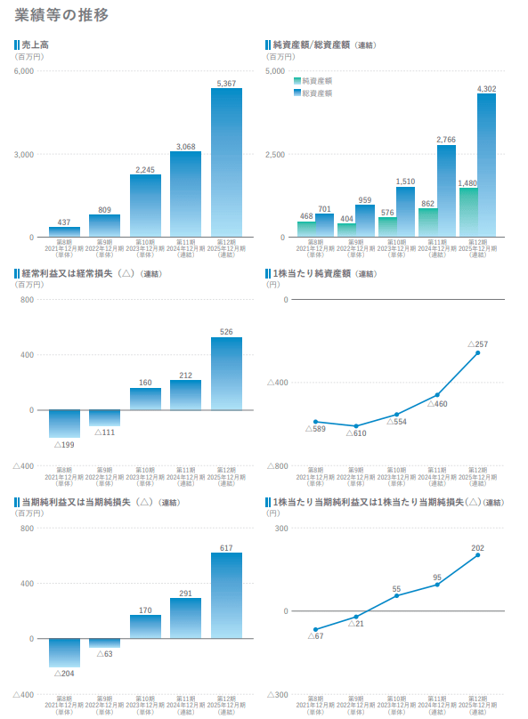 売上高は右肩上がりで成長しており、赤字から脱却し利益面でも黒字化を達成。