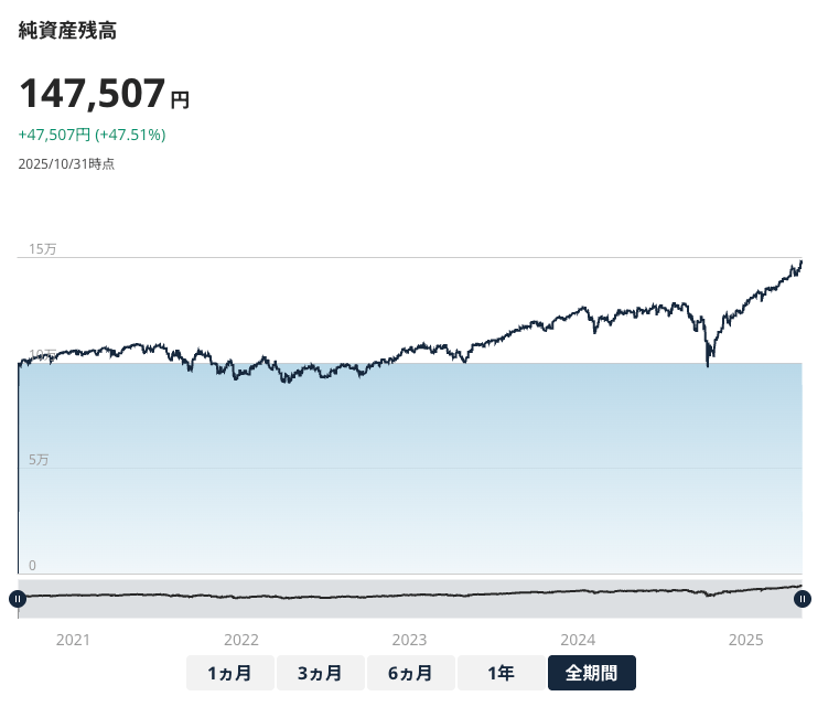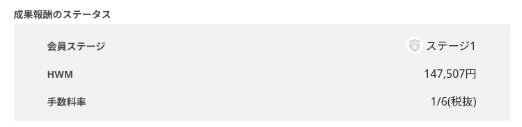 過去最高の評価額は147,507円ですので、次回はこの数字を超えると手数料がかかります。(なので今月は手数料が徴収される予定です。)