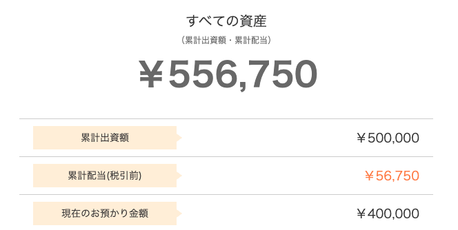 利回り4%の案件に1万円出資したら分配金は400円ほど。