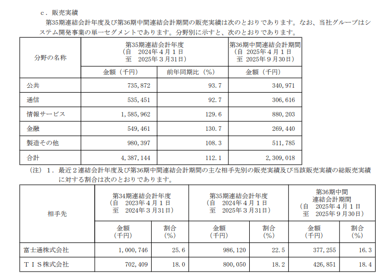 相手先は富士通、TISに合わせて34%ほどの売上を依存しています。