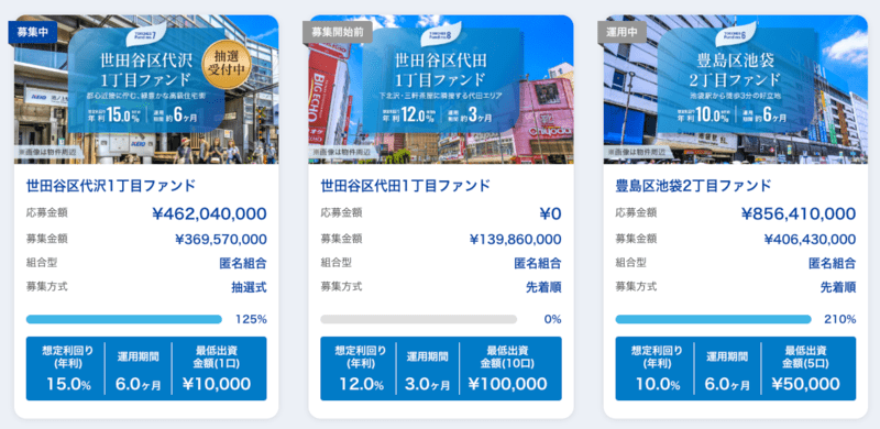 対象は第5号ファンドとなる【新宿区若葉1丁目ファンド】以降のファンドが対象です。