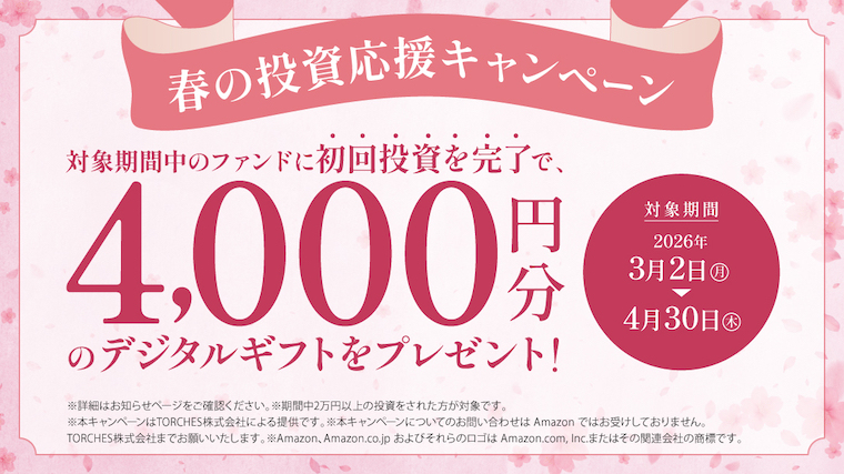 それではTORCHES(トーチーズ)で実施中の春の投資応援キャンペーンを紹介します。