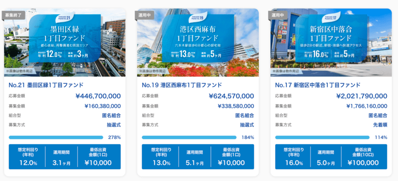 対象は第20号ファンドとなる【港区赤坂2丁目ファンド】以降のファンドが対象です。