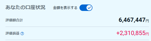 今月の含み益は2,310,855円です。