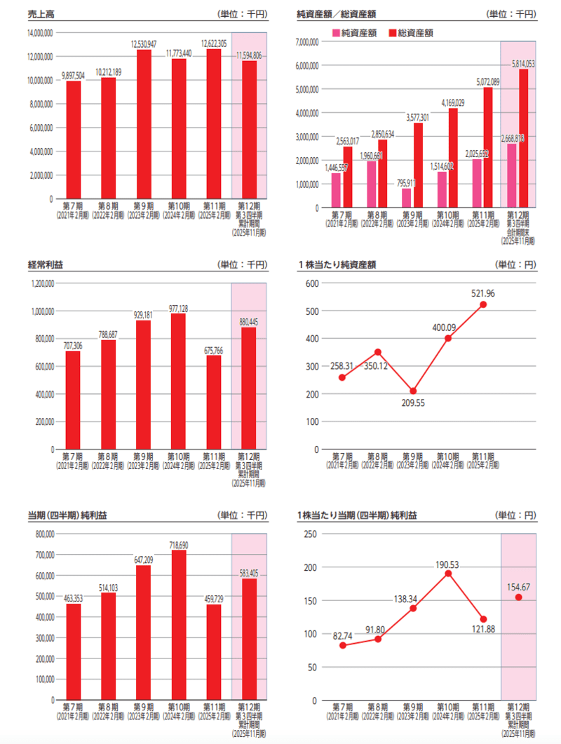 さらに2026年2月期(第3四半期まで)も順調に利益を積み上げており、黒字企業としての信頼性は抜群です。