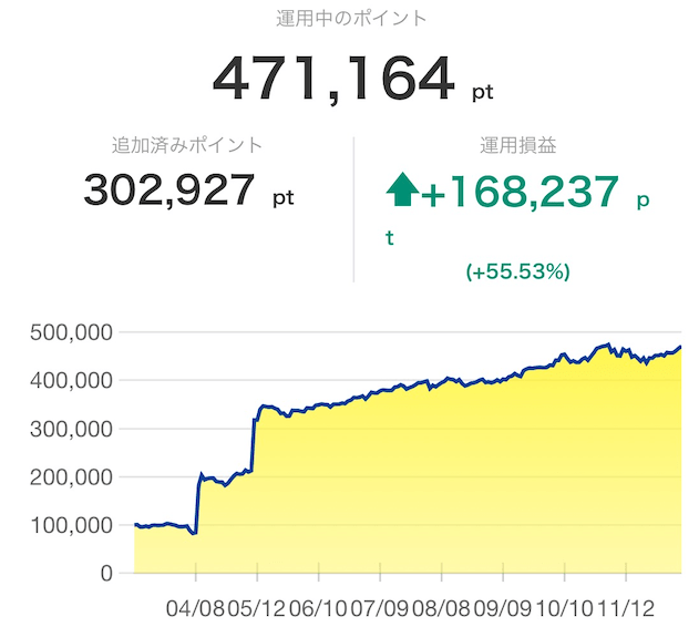 擬似投資ではありますが、投資ですのでタイミング次第ではポイントが減る可能性もあります。
